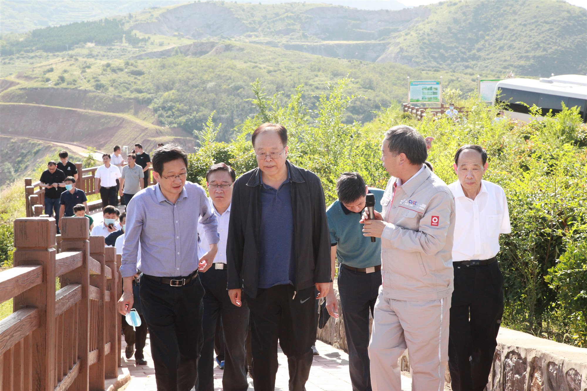 馬懿一行深入黃河同力鹿角嶺礦山進(jìn)行現(xiàn)場(chǎng)實(shí)地調(diào)研。黃河同力黨委書記、總經(jīng)理夏磊從公司基本情況、鹿角嶺礦山生態(tài)環(huán)境恢復(fù)治理及資源綜合利用情況、下一步礦山生態(tài)恢復(fù)治理建設(shè)計(jì)劃向馬主任進(jìn)行了詳細(xì)介紹。馬主任在了解鹿角嶺礦山基本情況后,并對(duì)公司積極開展礦山恢復(fù)治理工作及資源綜合利用給予充分肯定。
